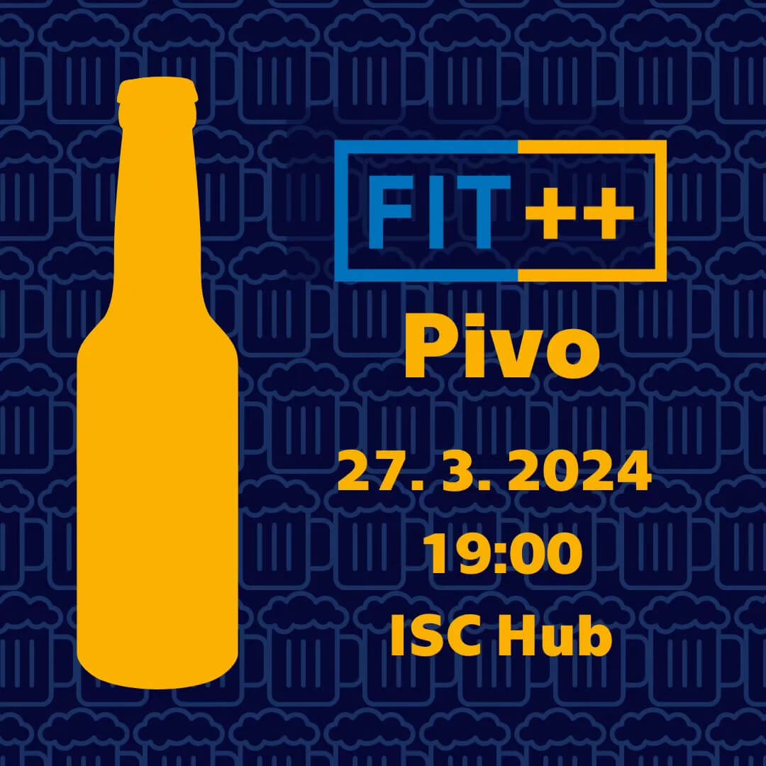 FIT++ Pivo 🍺 Ať už jsi dlouholetý člen FIT++ a nebo o nás slyšíš poprvé, zveme tě 27. 3. 2024 v 19:00 na FIT++ Pivo!🍻 (Nebo limo/ kafe/ … nesoudíme). Přijď se dozvědět, co všechno teď v klubu kuchtíme, jaké velké plány máme do budoucna nebo jak se i ty můžeš zapojit. Moc rádi uslyšíme tvůj názor! Najdeš nás v ISC Hubu, nově otevřené studentské hospodě na Masarykově koleji (z lobby po schodech dolů do suterénu), kde budeme přímo před barem. Budeme se těšit. PS: Horčicové brambůrky budou! 😎