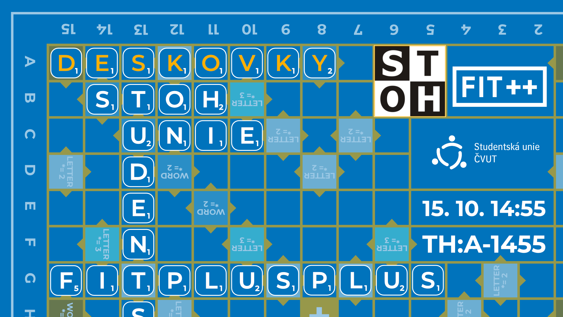 Semestr se sice teprve pořádně rozjel, ale pauza se hodí vždycky. Přijď si 15. 10. od 14:55 zahrát deskové hry, pobavit se s kamarády a na chvíli vypnout od povinností u malého občerstvení.