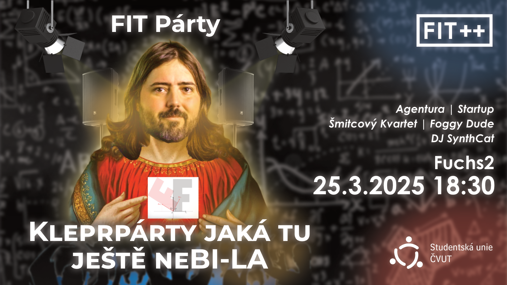 Vítáme vás všechny v novém semestru, ve kterém vás kromě učení, testů a zkoušek, čeká také tradiční FIT Párty. Tentokrát nás čeká Kleprpárty jaká tu ještě neBI-LA!